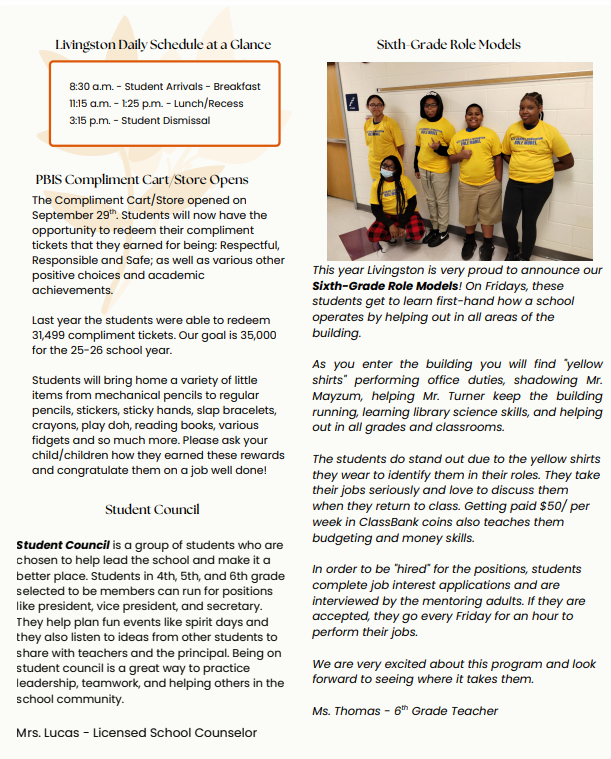 School Hours: 9:00 a.m. - 3:30 p.m.Livingston Elementary School